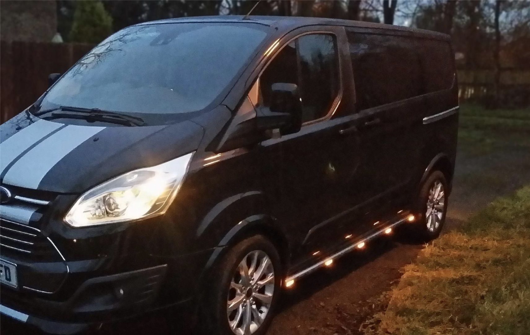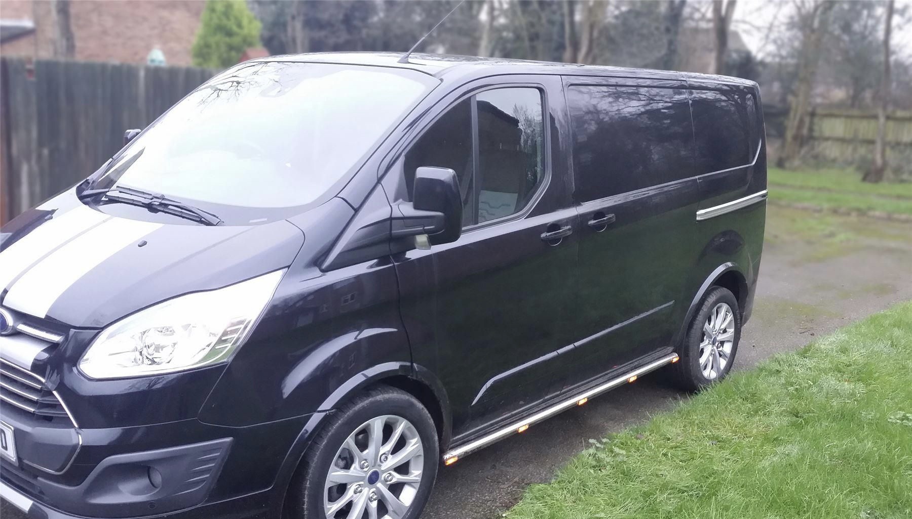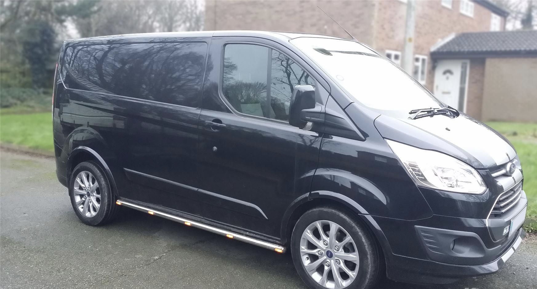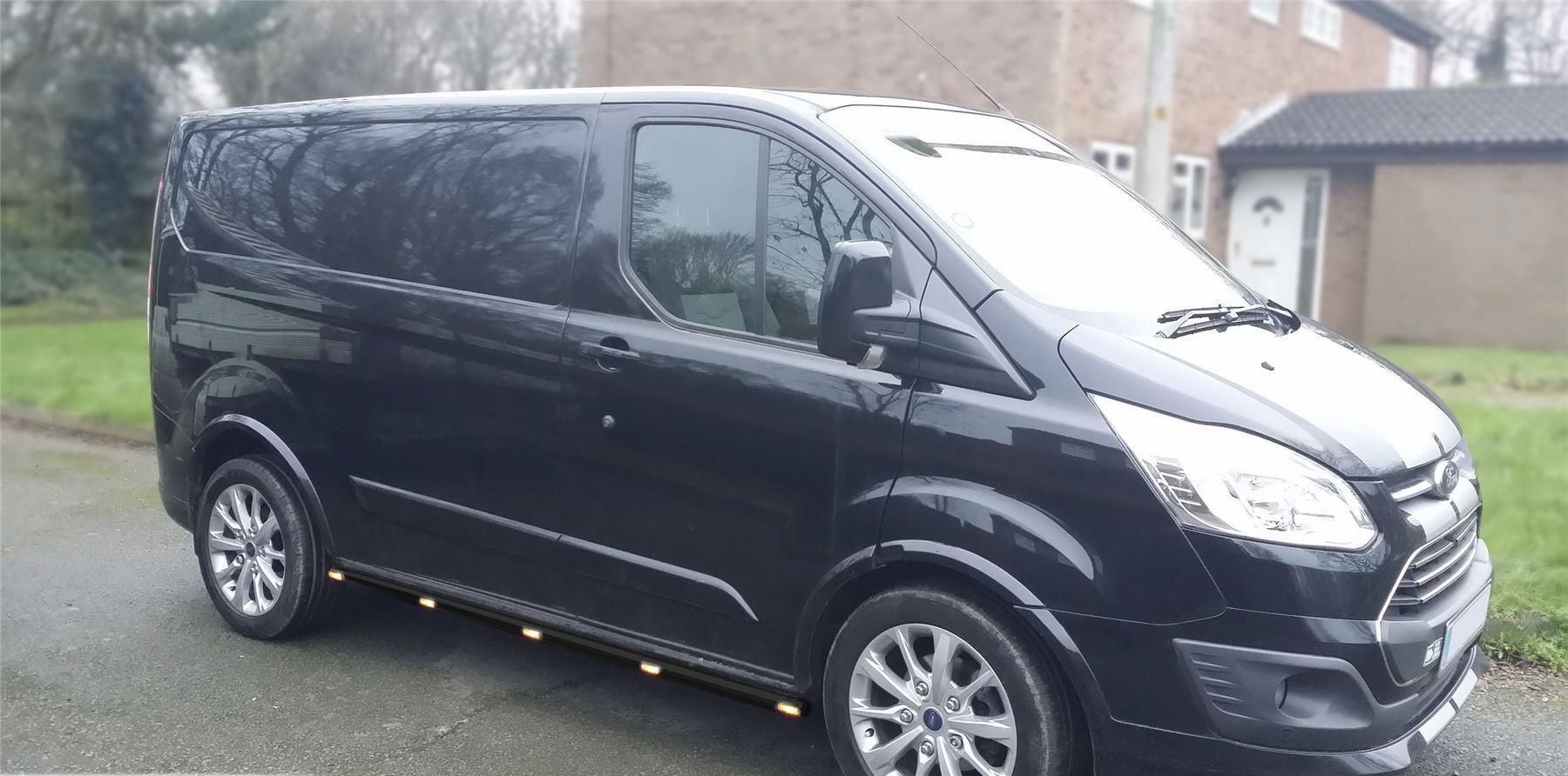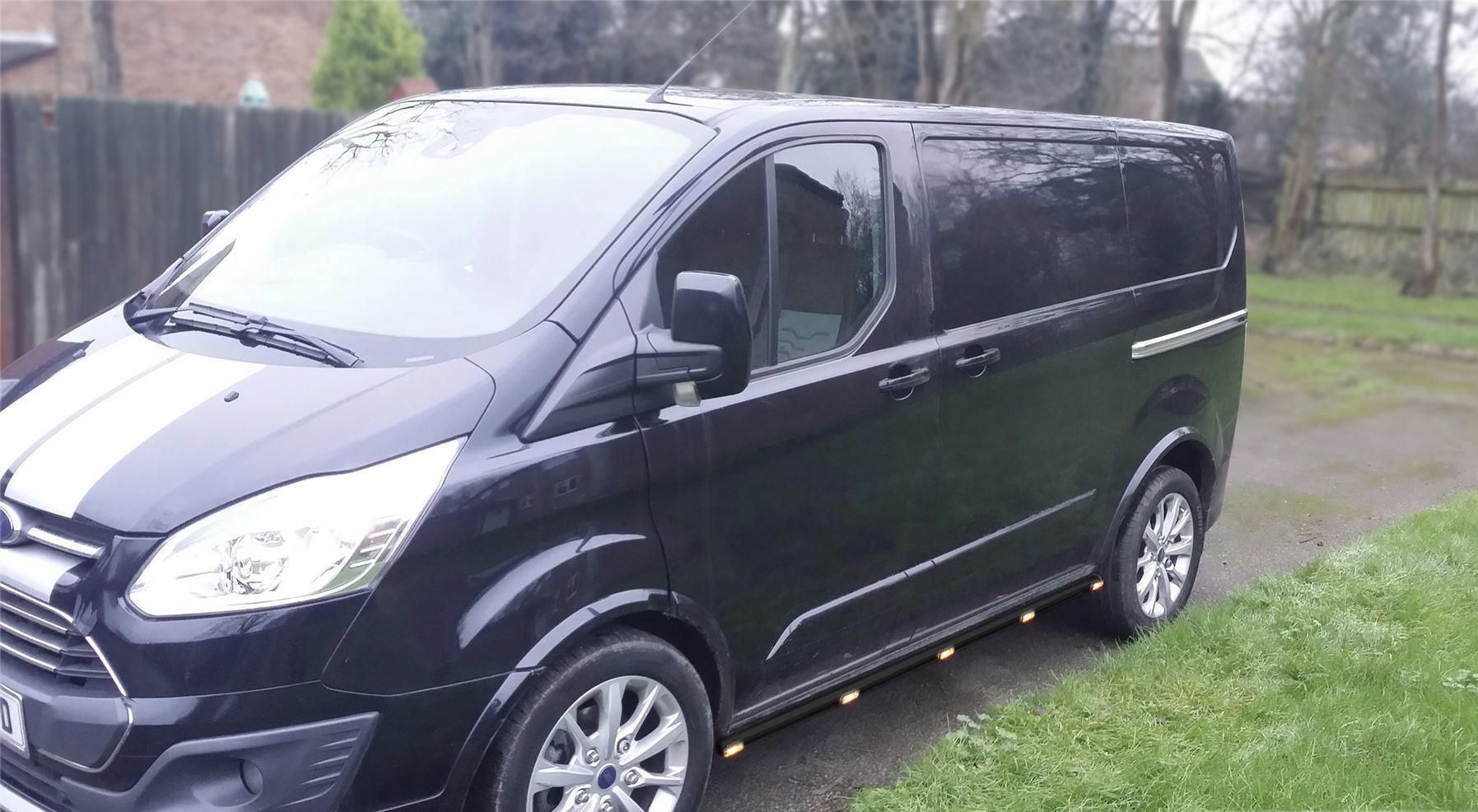 Ford Custom [12+ / 18+] küljerauad kollaste LED gabariitidega, must või poleeritud teras.