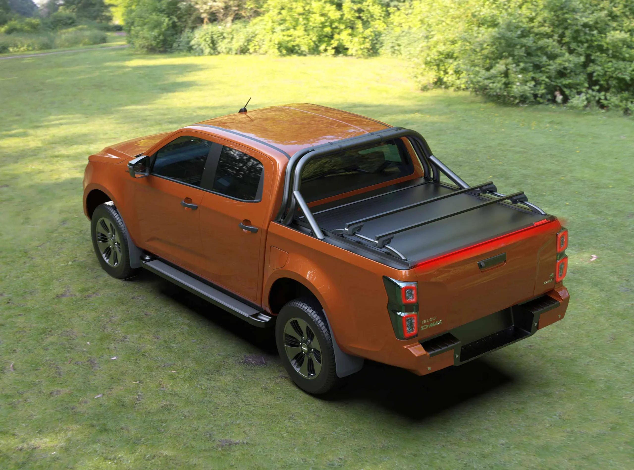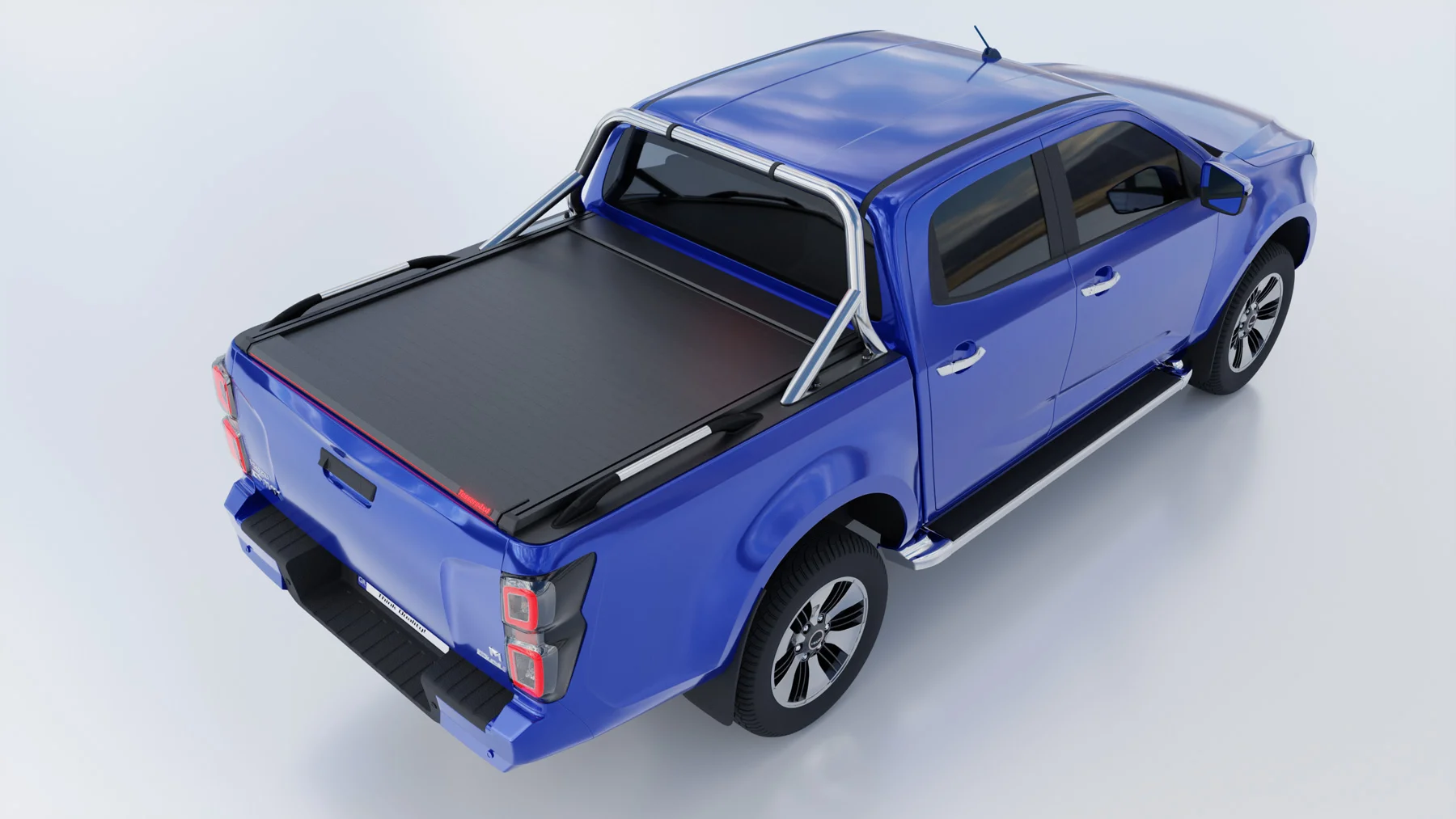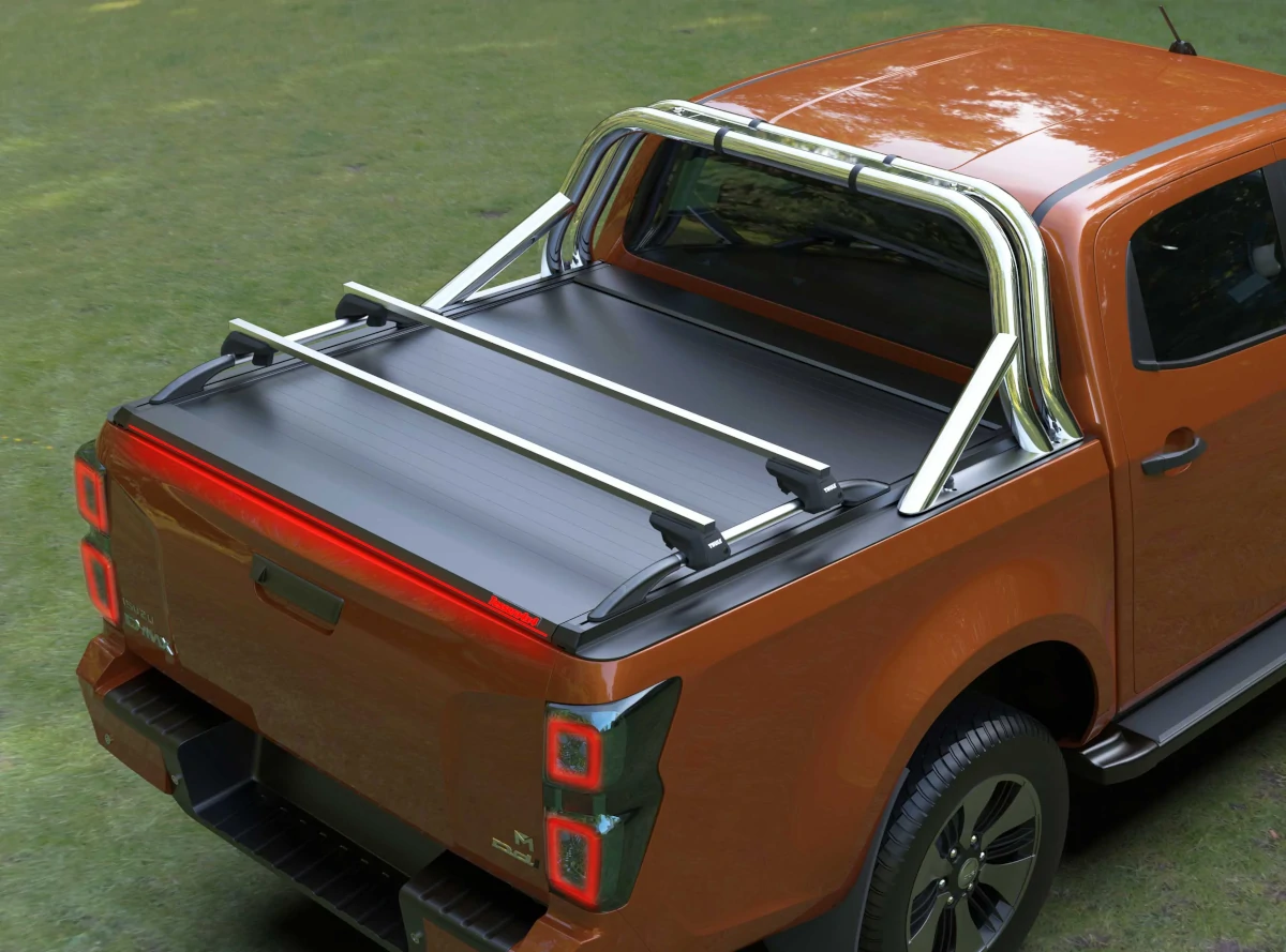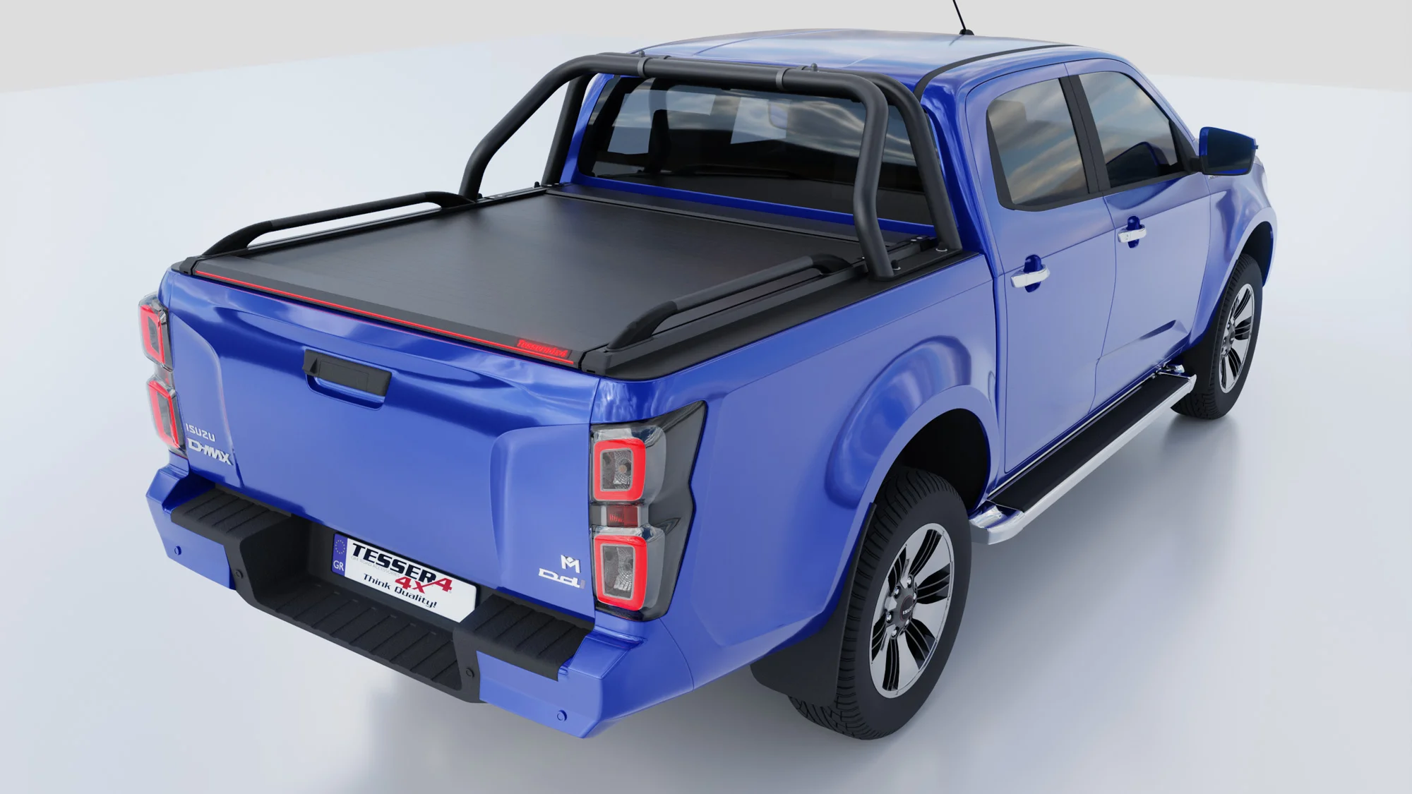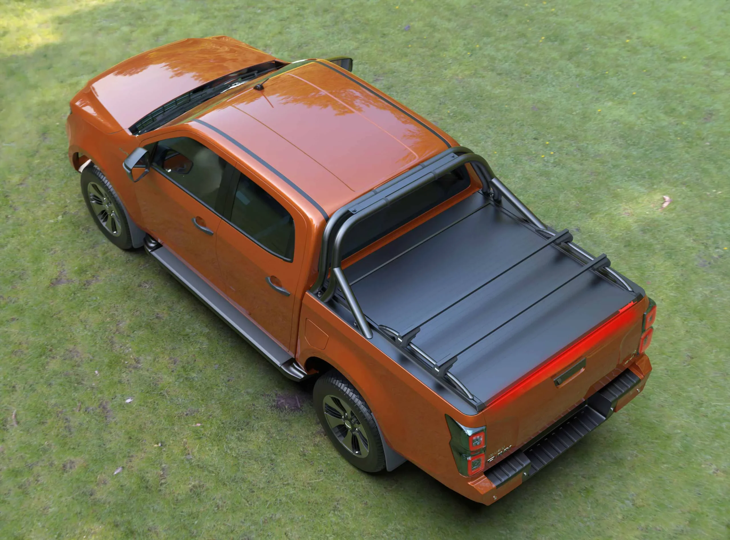 Uuden sukupolven sähköinen lavapeite Tessera Roll+ (BASIC-versio integroidulla E-KITillä), 8 patentilla suojattu, saatavilla Ford Ranger T6.2 (P703) 2023+ double cab -malliin, yhteensopiva Fordin tehdasasenteisen WildTrak-rollbarin kanssa. Vallankumouksellinen ja futuristinen muotoilu, monipuolisuus, kestävyys, 100 % käsityötä ja 3 vuoden takuu materiaaleille ja valmistuslaadulle.