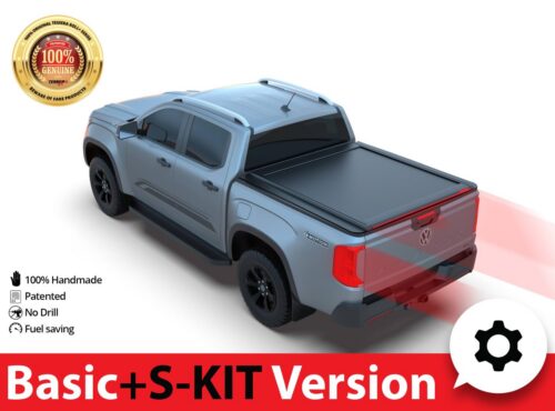 Uuden sukupolven sähköinen lavapeite Tessera Roll+ (BASIC-versio integroidulla E-KITillä), 8 patentilla suojattu, saatavilla Ford Ranger T6.2 (P703) 2023+ double cab -malliin, yhteensopiva Fordin tehdasasenteisen WildTrak-rollbarin kanssa. Vallankumouksellinen ja futuristinen muotoilu, monipuolisuus, kestävyys, 100 % käsityötä ja 3 vuoden takuu materiaaleille ja valmistuslaadulle.