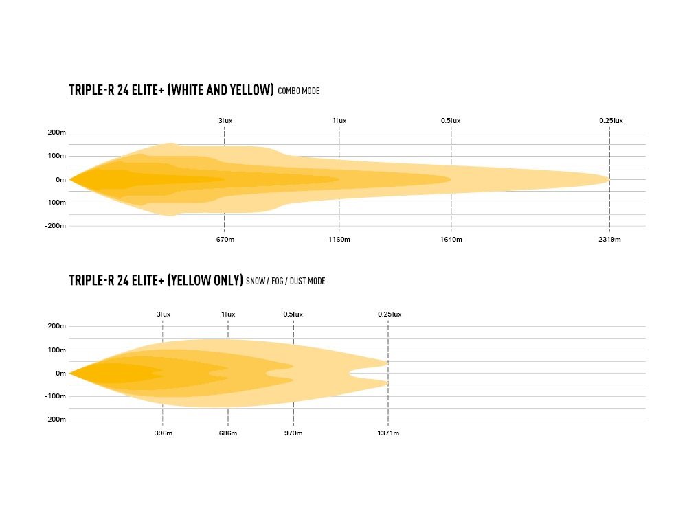 Yellow LEDs optimised for use in snow / fog / dust conditions.