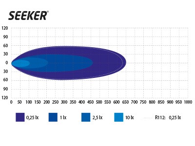 Kirjeldus: SEEKER® Ultima 20 Curved. 20 x Philips Zes 5000K LEDi, IP68,1,4Kg, Ref. 45, täisvõimsus 4800lm / R112 4500lm