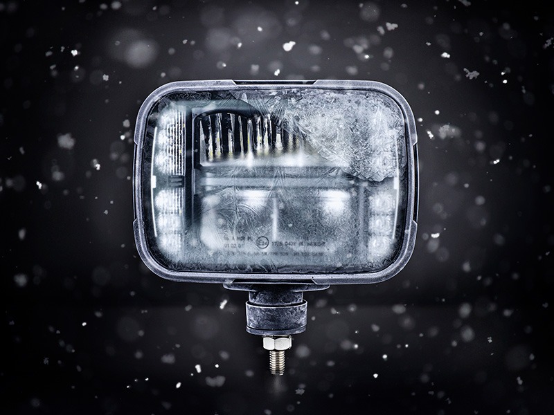 Kirjeldus: Alaska plow light LED is the starting signal for the next generation of plow lights. Alaska creates maximum visibility and have a stylish design. The plow lamp has a heating lens with automatic thermostat control that starts at five degrees and keeps ice and snow away. Without the need to handle the lamp manually.<br/><br/>The plow lamp comes with the functions, high beam, low beam, position light and indicators. The functions are E-approved with reference number 17.5. Can be mounted on both the right and left side and the bracket can be mounted on the back or at the bottom. Alaska fits most agricultural and construction vehicles. Especially for snow removal vehicles where the plow blade does not cover the standard headlight.